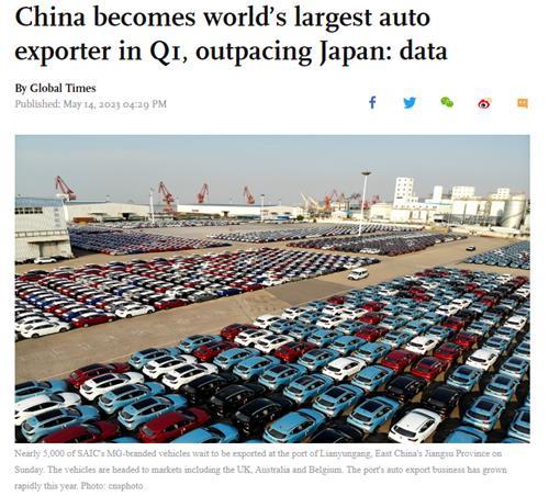 1분기 일본 제치고 세계 1위 자동차 수출국 된 중국/글로벌타임스 캡처