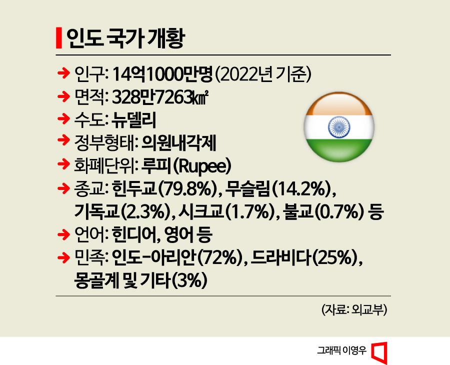 13일 유엔(UN)인구전망에 따르면, 올해 중반 인도 인구가 14억2860만명으로 중국(14억2570만명)보다 많을 것으로 예측되면서 세계 1위 인구대국 자리를 놓고 인도-중국 간 신경전이 뜨겁다. 인도의 경우 아직 중국만큼의 성장세를 기대하기는 어렵지만, 인구를 무기로 빠르게 중국을 추격하면서 중국의 잠재적 경쟁자로 떠올랐기 때문이다. 미·중 갈등 속에서 거대 인구와 성장성을 앞세운 인도가 중국을 대체할 수 있는 또 하나의 시장으로 부각되면서 인도 시장을 선점하기 위한 주요국의 러브콜도 거세다.
