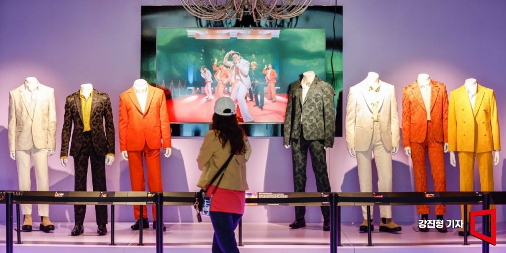 그룹 방탄소년단(BTS) 데뷔 10주년인 13일 서울 여의도 켄싱턴호텔에서 BTS가 '제63회 그래미어워즈' 단독무대에서 다이너마이트를 열창했을 당시 실착 공연의상이 최초 공개되고 있다.