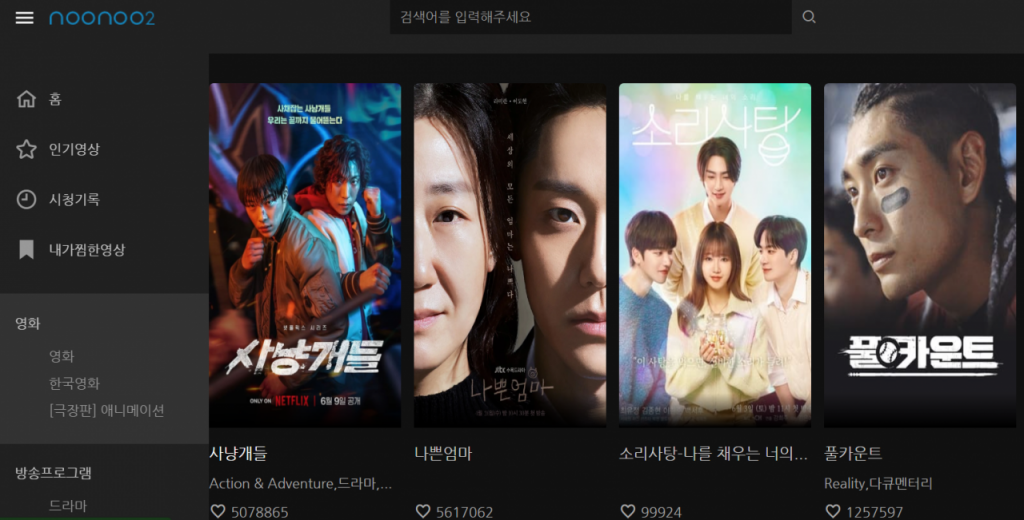 누누티비 시즌2 사이트는 간단한 인터넷 검색만으로 찾을 수 있다. 지난 11일 개설한 것으로 알려졌다. 공개 직후 넷플릭스 TV 부문 글로벌 1위에 오르기도 했던 '사냥개들'을 포함한 최신 영상 스트리밍을 제공 중이다. 최근 인기리에 종영한 '낭만닥터 김사부3' '닥터 차정숙' 등도 있다. 드라마뿐만 아니라 예능과 시사다큐, 해외드라마, 영화, 애니메이션까지 다양한 분야의 영상을 무료로 볼 수 있다.