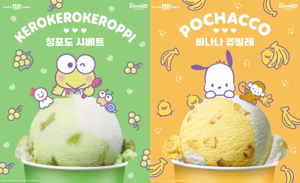 SPC 배스킨라빈스는 국내에서 인기를 끌고 있는 '산리오캐릭터즈'와 협업해 '청포도 샤베트' '바나나 쥬빌레'를 한정 출시한다고 22일 밝혔다.