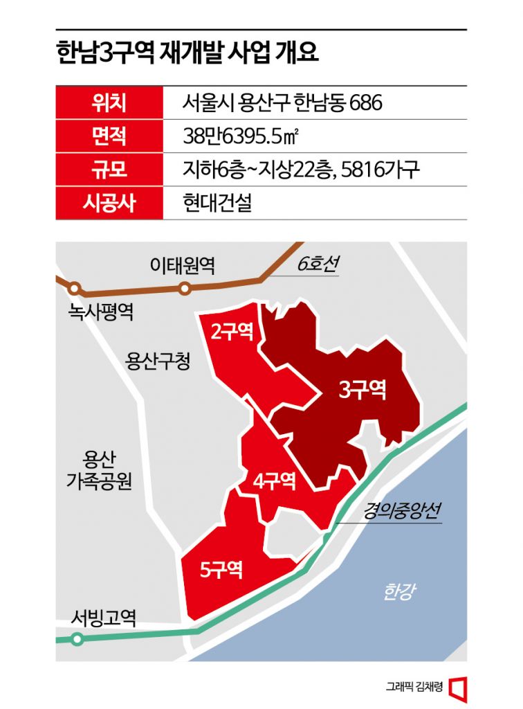 한남3구역은 한남동 686일대에 5816가구를 짓는 역대 최대 규모 재개발 사업이다. 총사업비가 8조3000억원에 이른다. 규모뿐만 아니라 남산에서 한남대교 쪽 한강 사이에 위치한 입지도 최고로 꼽힌다.