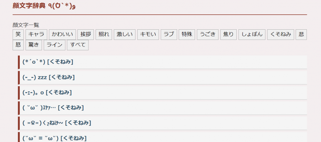상황별 카오모지를 쓸 수 있도록 정리해놓은 사이트.(사진출처-시메지 홈페이지)