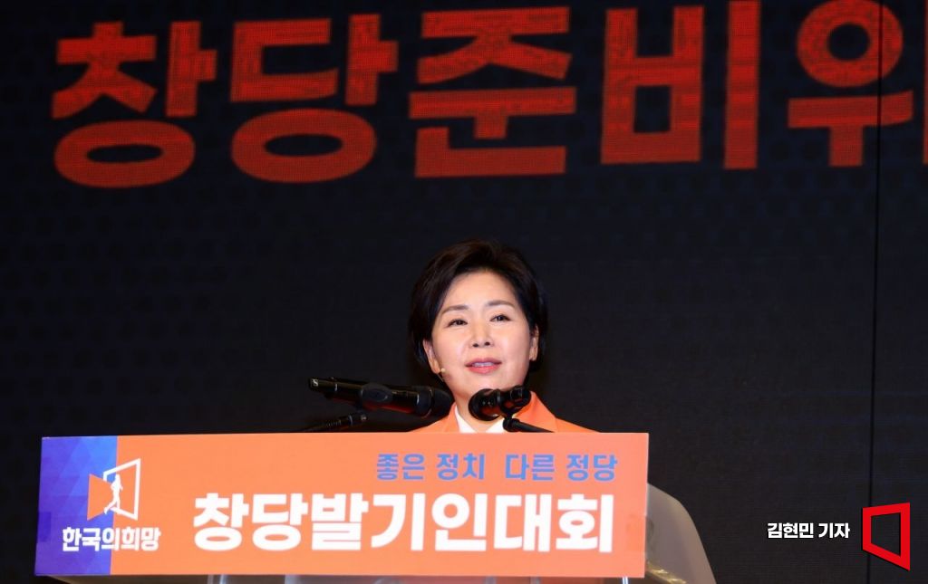 양향자 한국의희망 창당준비위원장이 26일 서울 여의도 중소기업중앙회에서 열린 한국의희망 창당발기인대회에서 인사말을 하고 있다. 사진=김현민 기자 kimhyun81@