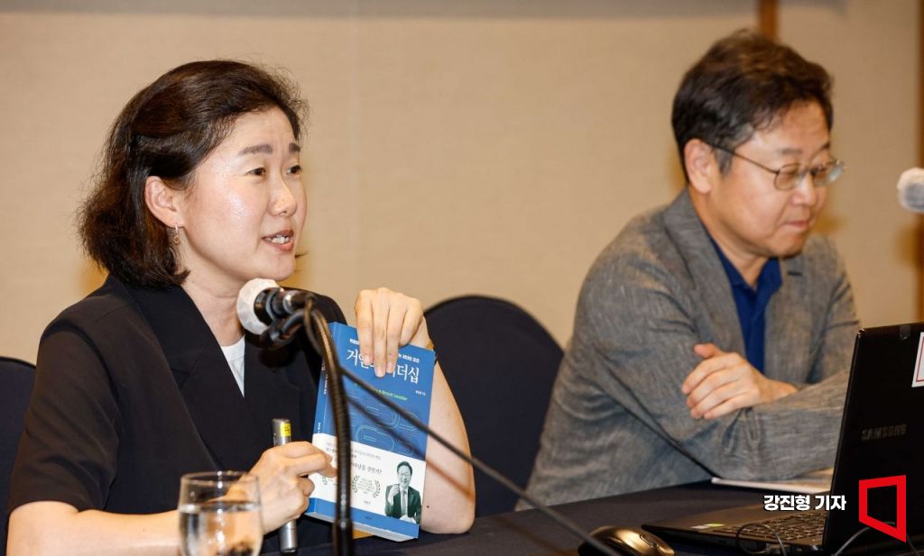 이보람 써드에이지 대표가 28일 서울 중구 프레스센터에서 아시아경제 주최로 열린 '2023 K-우먼클럽 세미나'에서 강연자를 소개하고 있다.
