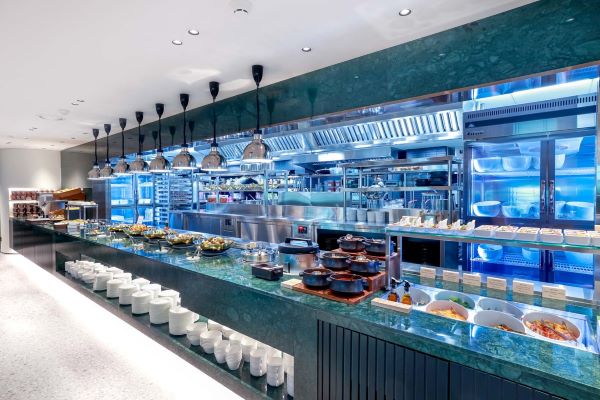 워커힐 호텔앤리조트에서 운영하는 인천공항 T1 환승호텔과 마티나 라운지가 리뉴얼 오픈했다. 사진은 동서양 여러 메뉴를 즐길 수 있는 마티나 라운지 뷔페 모습. [사진제공=워커힐 호텔앤리조트]