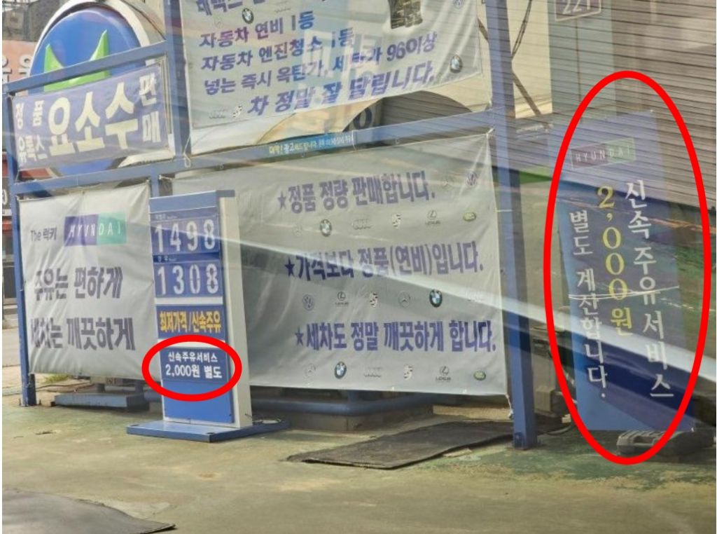 업체를 방문한 후기도 각양각색이다. "신속 주유 서비스 2000원이라는 말이 쓰여 있길래 이게 뭔가 싶었지만, 일단 기름이 급해 들어갔다"는 A씨는 "주유를 빨리할 수 있게 도와주면서 받는 서비스 비용 2000원을 추가로 내야 한다는 이야기를 들었다"고 했다.