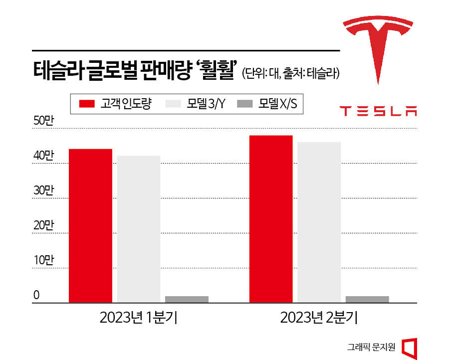 테슬라는 올 상반기 전 세계에서 90만대 가까이 팔았다. 지난해 4분기 처음으로 분기 판매량 40만대를 넘긴 후 올 들어서도 꾸준히 상승세를 타 올해 2분기엔 46만대를 넘겼다. 다만 한국에선 뒷걸음질 쳤다. 올 상반기 한국 내 판매량은 절반가량 줄었다. 4~5년간 신차가 없는 점, 가격 인하 정책 등이 수요에 악영향을 끼쳤다는 분석이 나온다. 수요가 줄어든 만큼 공급도 줄일 요인도 많다. 테슬라코리아는 인적 쇄신, 고객 대상 서비스 강화 등 침체에서 벗어나려는 움직임을 보이고 있다.