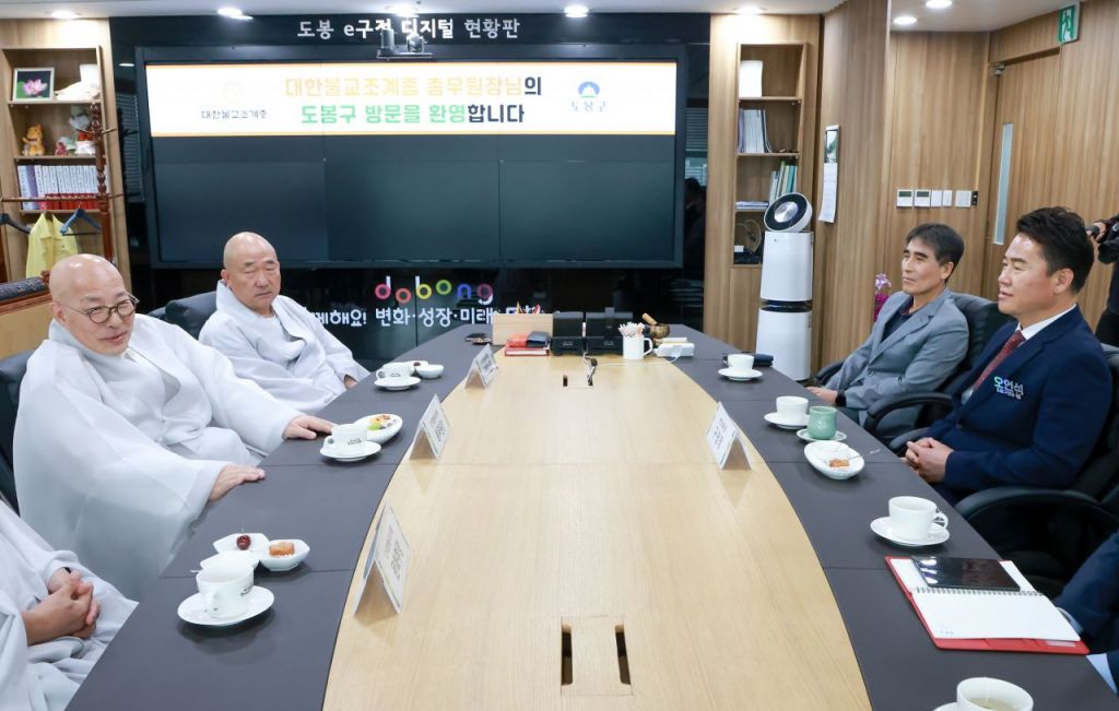 대한불교조계종 총무원장(진우스님), 기획실장(성화스님), 문화부장(탄원스님)은 10일 도봉구를 방문했다. 총무원장 진우스님은 오언석 도봉구청장을 만나 영국사 및 도봉서원 터의 현황에 대한 설명을 듣고 영국사 및 도봉서원 터 현장을 직접 확인했다.