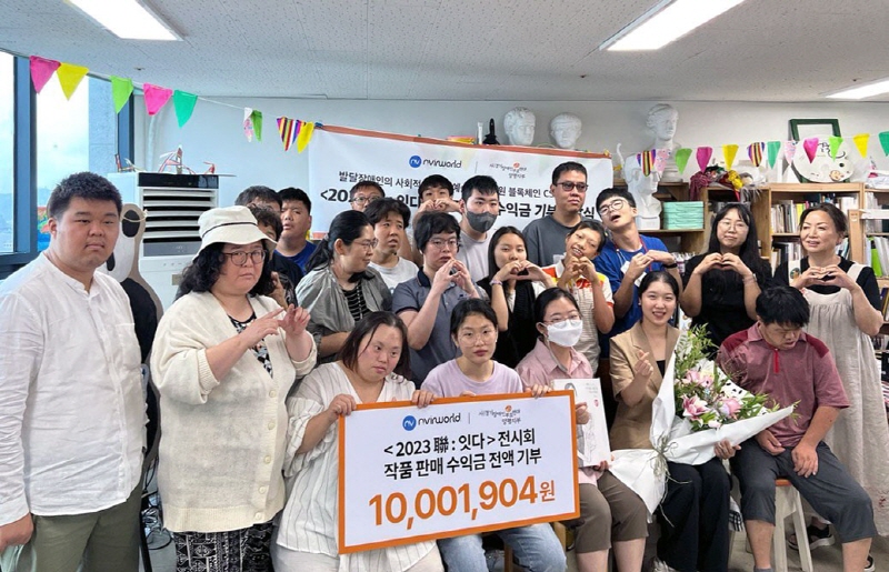 블록체인 전문기업 엔버월드(NvirWorld)는 경기장애인부모연대 양평지부와 진행한 '2023 聯:연을 잇-다' 전시회의 작품 판매 수익금을 경기장애인부모연대 양평지부에 기부했다고 밝혔다.