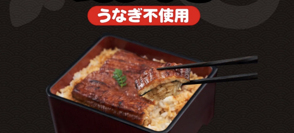 24일 니혼게이자이신문(니케이)은 지난 18일 식품기업 닛신이 1000세트 한정으로 선보인 '플랜트 베이스 장어' 덮밥을 소개했다. 장어는 식물성 기름과 단백질을 조합해 탄생했는데, 닛신은 콜라겐과 기름이 많은 장어의 특성을 고려해 끈적하면서도 기름진 장어구이 특유의 맛을 구현했다는 호평을 받았다.