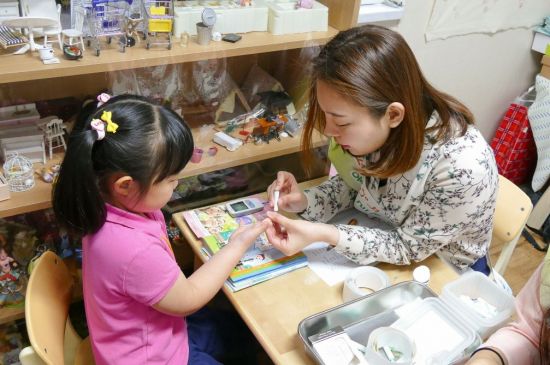 소아당뇨 진단을 위한 어린이집 혈당 검사 모습. 자료사진. 기사와 관련이 없음.