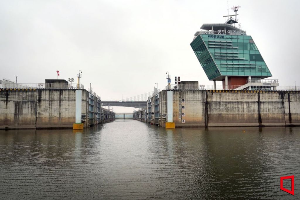 한강에서 경인아라뱃길로 진입하기 위해 아라한강 갑문을 개방한 모습 [아시아경제 자료 사진]