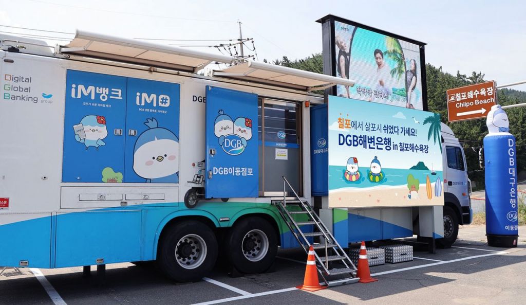 DGB대구은행(은행장 황병우)은 본격적인 여름 휴가철을 맞아 피서객을 위해 포항시 흥해읍 칠포 해수욕장에서 이동점포를 활용한 해변 은행을 운영하고 있다고 2일 밝혔다.