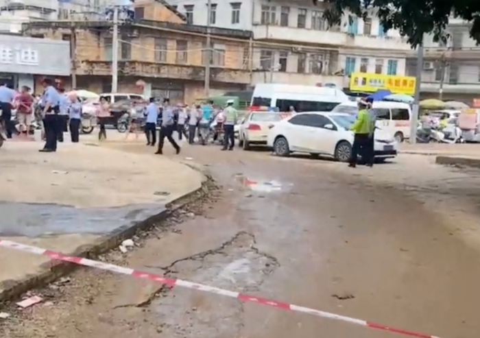 10일 7명의 사상자를 낸 칼부림 사건이 벌어진 중국 광둥성 롄징시 유치원 일대를 공안당국이 경찰 통제선을 쳐 놓고 통제하고 있다.[사진출처=연합뉴스]