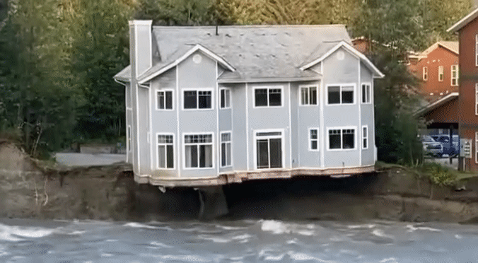 빙하호 붕괴로 홍수가 발생하자 무너진 주택 [사진출처=ABC 보도화면]