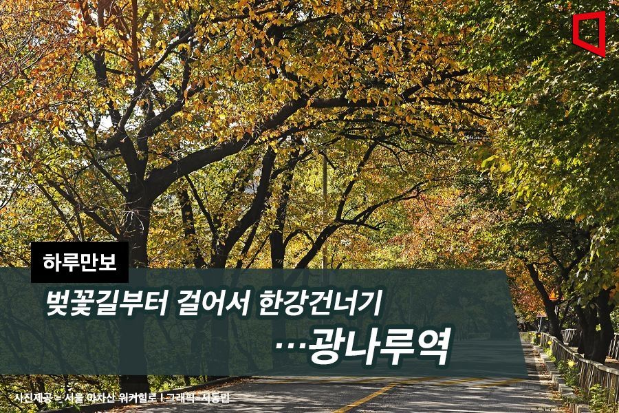 오늘의 걷기 코스는 광진구의 광나루역으로 가본다. 광나루역의 이름은 광진구 광장동에 있던 마을 이름에서 유래됐는데, 강폭이 넓은 나루와 광주로 가는 나루가 있어 이름이 유래됐다. 광나루역 인근에는 아차산이 있고, 한강도 멀지 않아 도시 속의 여유와 낭만을 누리기 좋다. 봄철에는 아차산생태공원과 워커힐호텔까지 이어지는 길이 벚꽃 명소로 유명하다.