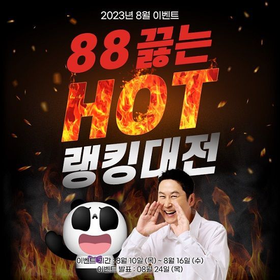 ㈜더블미디어에서 운영하는 온라인 방송 플랫폼 팬더티비가 8월 신규 이벤트 ‘88끓는 HOT 랭킹대전’을 진행한다고 밝혔다.