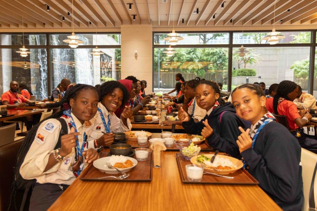 ‘2023 세계잼버리스카우트 대회’ 스카우트 대원들이 11일 SK서린빌딩 구내식당에서 점심식사를 즐기고 있다. 사진제공=SK이노베이션