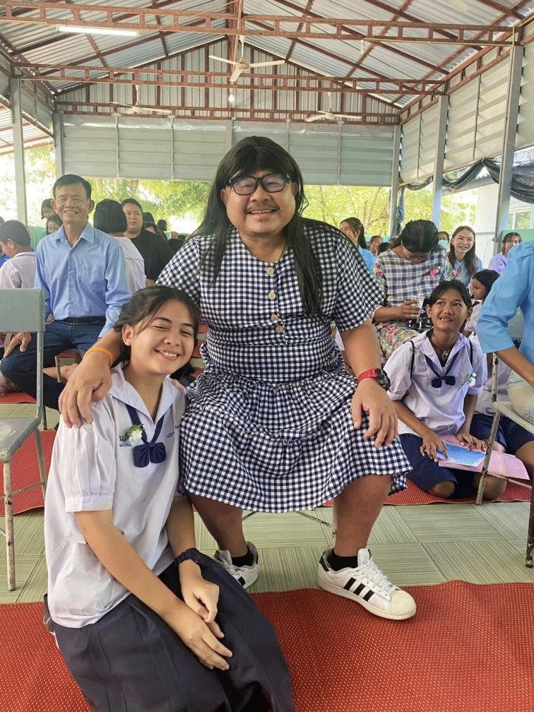 15일(현지시간) 태국 매체 타이랏 등에 따르면 태국 남성 조이(48)는 엄마 없이 홀로 15세 딸 크림을 키우고 있다. 딸의 학교에서는 지난 12일 '어머니의 날'을 맞아 교내 행사를 개최했다. 엄마가 없어 딸이 기죽을까 봐 걱정된 조이는 긴 머리의 가발을 쓰고 체크무늬 원피스를 입은 여장을 한 채 이날 행사에 참석했다. 현지 매체들은 조이가 딸의 학교에서 체육과 건강 교육을 가르치는 교사라고 보도했다.