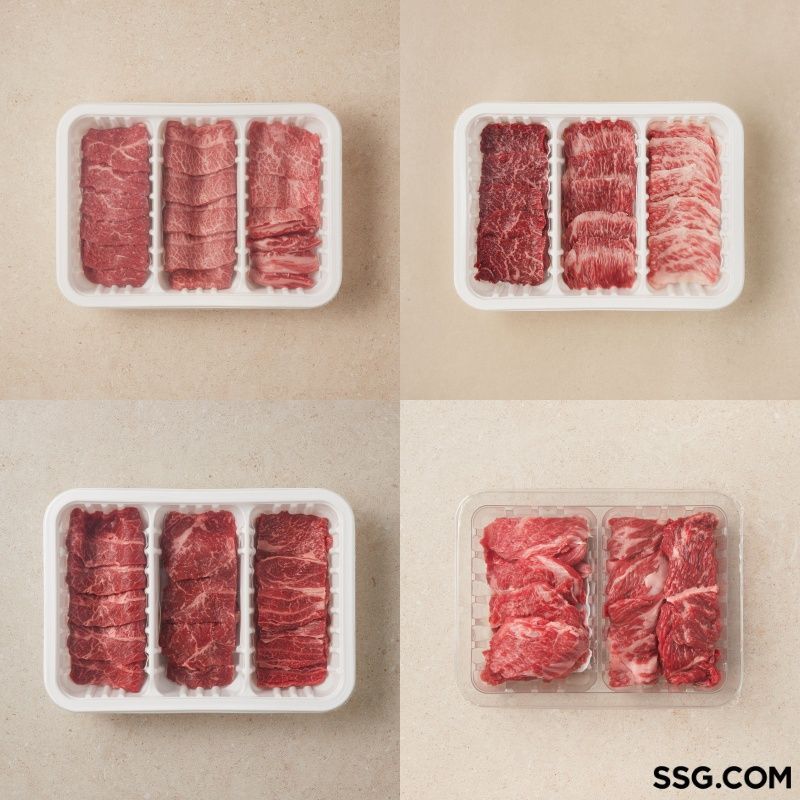 구체적으로 ‘한우 갈비정육 모둠구이 700g(갈비살 200g, 부채살 250g, 삼각살 250g)’과 ‘한우 양지 모둠구이 600g(치마살 200g, 업진살 200g, 차돌박이 200g)’, ‘한우 등심채끝 모둠구이 600g(등심 200g, 채끝 200g, 부채살 200g)’과 ‘한우 특수부위 모둠구이 400g(제비추리 200g, 안창살 100g, 토시살 100g)’을 선보인다.