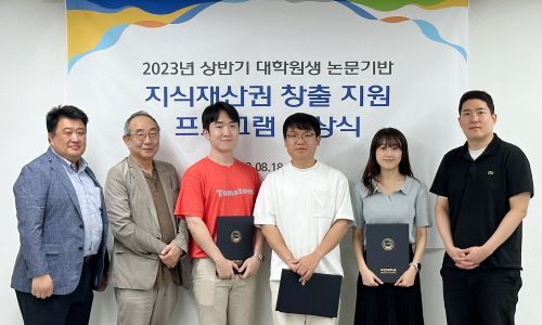 국민대학교(총장 임홍재) 산학협력단이 지난 18일 국민대학교 산학협력관에서 '2023년 상반기 대학원생 논문기반 지식재산권 창출 지원 프로그램 공모' 시상식을 진행했다고 밝혔다.