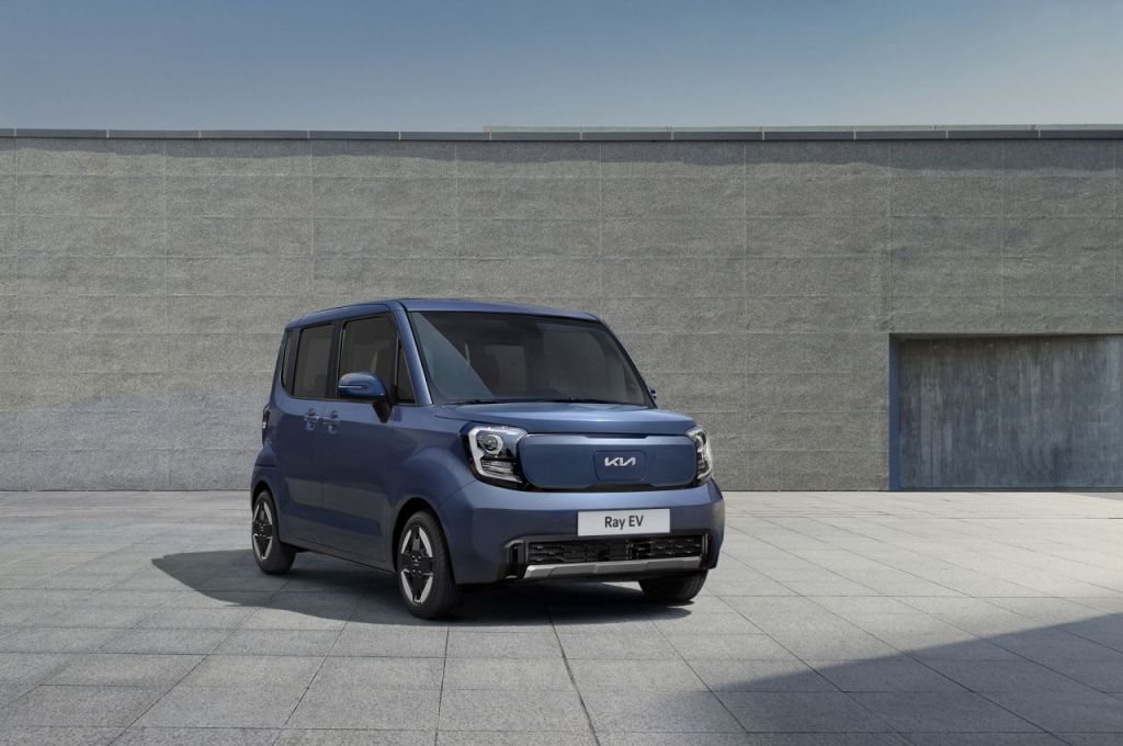 레이 EV는 지난해 출시된 경차 레이의 디자인을 기반으로 14인치 알로이 휠과 육각형 충전구를 넣은 전면부 중앙부 장식 등 전기차 전용 디자인 요소를 적용했다.