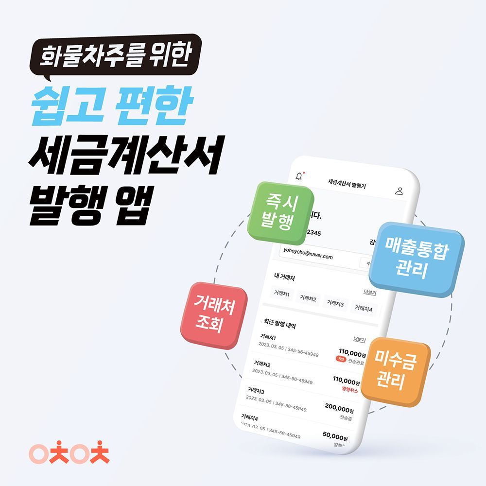 영차영차의 전자세금계산서 발행 서비스는 간편함을 최우선으로, 공인인증서와 홈텍스 접속 없이 전자세금계산서를 정발행하고 국세청으로 전송할 수 있는 기능을 제공한다. 또한 영차영차에 화물 차량 차주임을 인증한 회원이라면 누구나 무료로 사용할 수 있다.