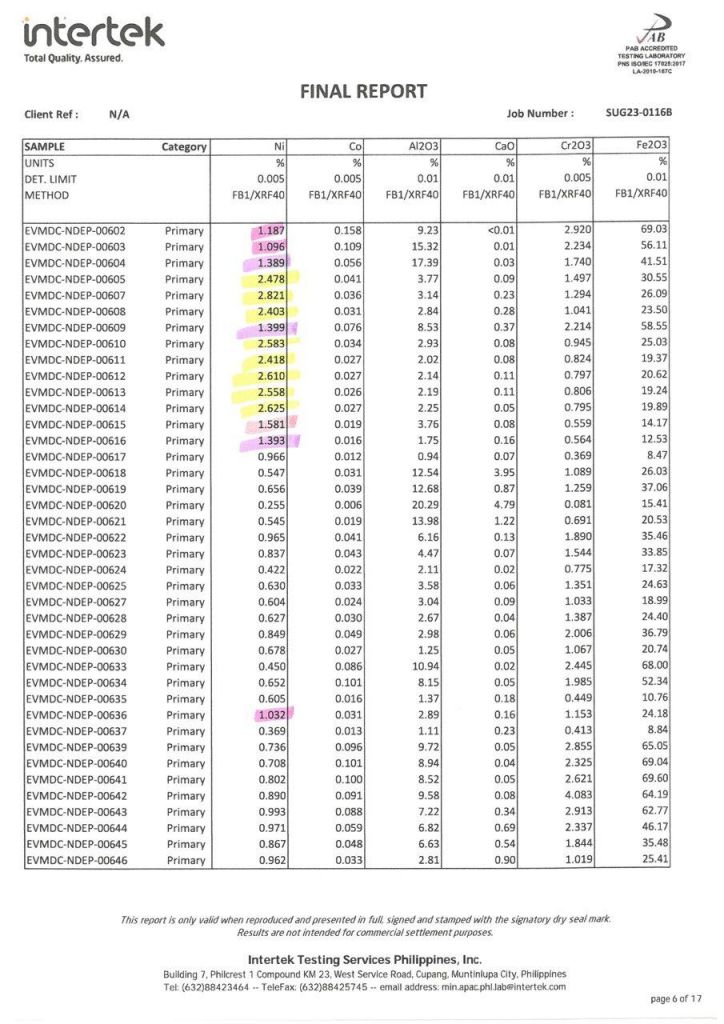 제이스코홀딩스는 120여곳을 드릴링 작업을 완료하고 180곳을 추가로 진행하고 있다. 글로벌 시험?검사 기관 인터텍(Intertek) 분석 보고서에 따르면 드릴링을 통해 채취된 원광의 니켈 함량은 최고 2.8%까지 초고순도로 확인됐다. 특히 광산은 일반적으로 상층부일수록 니켈의 함량이 높은 만큼 조만간 수령할 예정일 고지대 드릴링 분석결과도 기대된다.