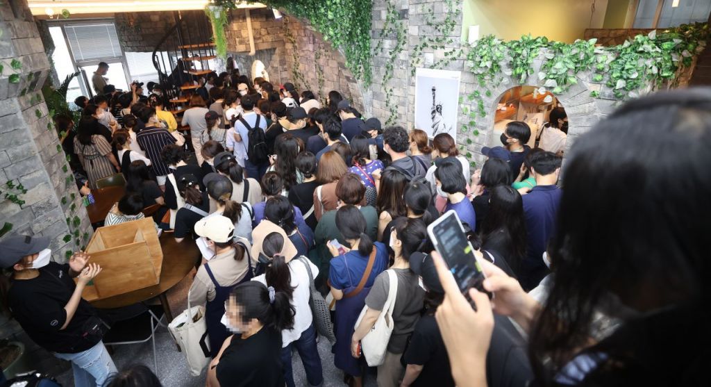 2021년 8월13일 서울 영등포구에 위치한 결제플랫폼 회사 '머지포인트' 본사에 환불을 요구하는 가입자들이 모여 있다. [이미지출처=연합뉴스]