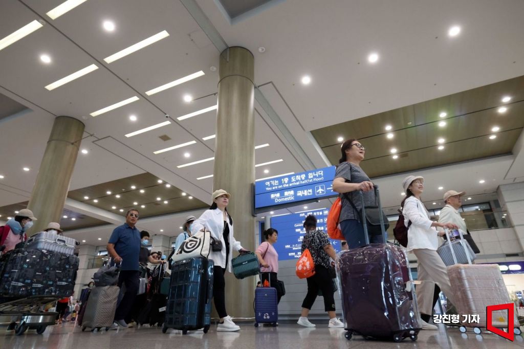 24일 인천국제공항 제1여객터미널에서 중국인 단체 관광객들이 입국하고 있다. 이날 한중 수교 31주년을 기념해 한국관광공사는 중국인 단체 관광객 환대 행사를 진행 했다. 사진=강진형 기자aymsdream@
