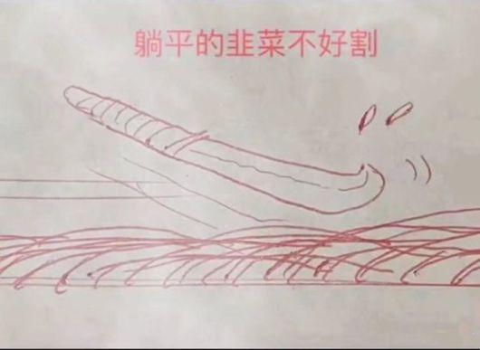 중국 인터넷에서 유행 중인 탕핑족을 표현한 이미지. "누운 부추는 베지 못한다"는 탕핑족들의 강령이 나와있다.[이미지출처=웨이보]