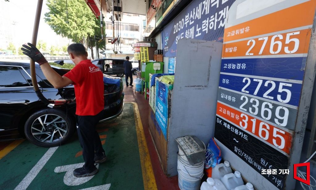 유류세 인하 연장 조치에도 국제 유가 상승세가 계속되자 휘발유 값이 8주째 오름세를 이어가고 있는 6일 서울 시내 한 주유소에 휘발유, 경유 판매 가격이 표시돼 있다. 사진=조용준 기자 jun21@