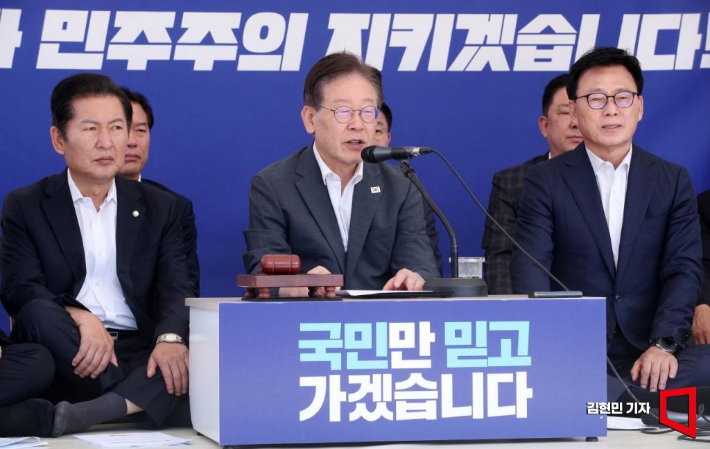 이재명 더불어민주당 대표가 6일 국회 본청 앞 단식투쟁천막에서 열린 최고위원회의에 발언하고 있다. 사진=김현민 기자 kimhyun81@