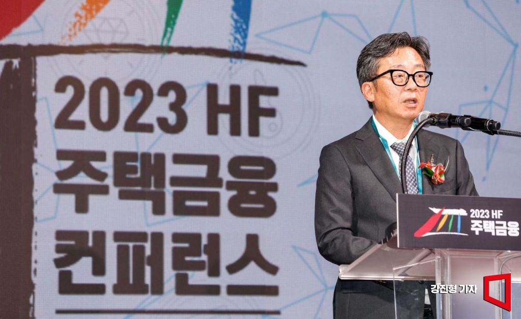 고성수 건국대학교 교수가 6일 서울 여의도 전경련회관에서 열린 '2023 HF 주택금융 컨퍼런스'에서 기조연설하고 있다.