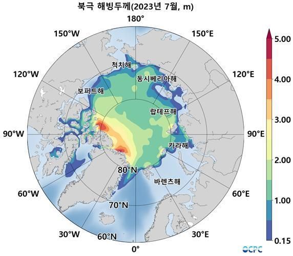 KIOST는 "7월 기준 북극 주변 해빙 두께가 1m 이내로 얇아지고 있어 주변의 따뜻한 해수가 유입될 경우, 향후 북극에 폴리냐가 더 빈번하게 발생할 것으로 우려된다"라며 "폴리냐가 장기간 지속될 경우 겨울철 북극 해빙의 확장을 저해할 수 있고, 이에 따라 한반도에 겨울철 한파를 유발할 수 있다"라고 설명했다.