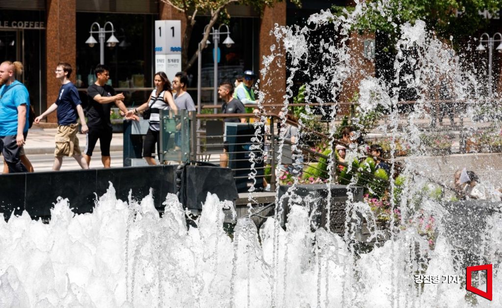 비가 그친 뒤 높은 습도를 동반한 더위가 다시 찾아온 5일 서울 청계천을 찾은 외국인 관광객들이 더위를 식히고 있다. 사진=강진형 기자aymsdream@