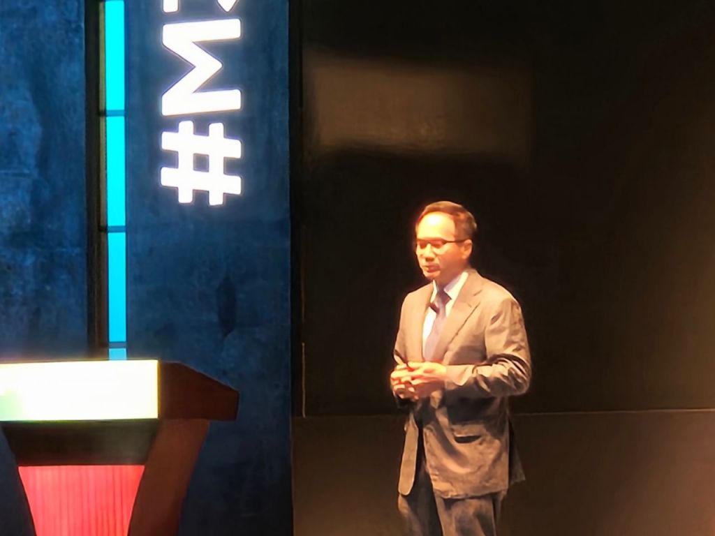 김우준 삼성전자 네트워크사업부장(사장)이 7일 서울 중구 웨스틴조선호텔에서 열린 ‘모바일360 아시아태평양(M360 APAC)’ 콘퍼런스에서 기조연설을 하고 있다. [사진=오수연 기자]
