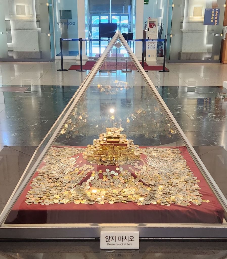 한국은행 화폐박물관 1층 화폐광장에 놓인 돈 피라미드.