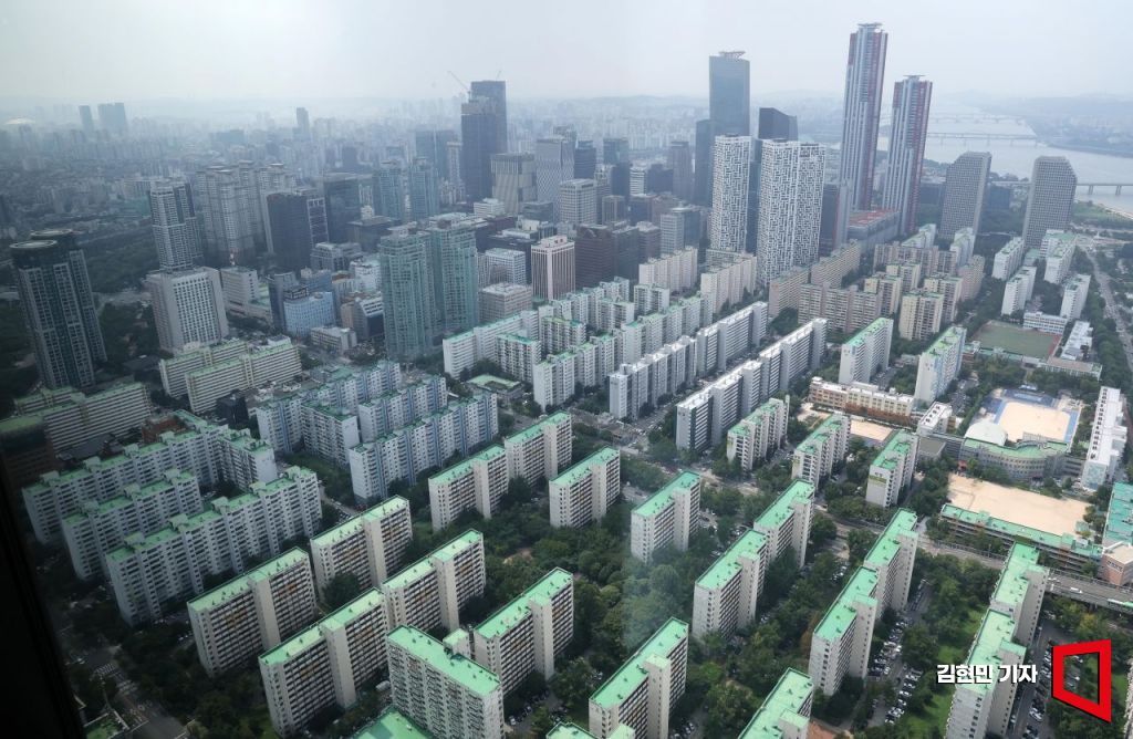 서울 여의도 63빌딩 전망대에서 바라본 일대 아파트 모습. / 사진=김현민 기자 kimhyun81@
