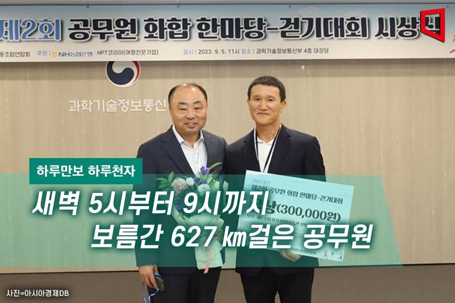 최 주무관은 MBC 신인왕전 MVP 우수 선수상을 탄 복서출신으로 그의 끈기와 지구력에 참가한 공무원 모두가 놀랐다는 후문이다. 최 주무관은 지난 7월 24일부터 8월 7일까지 15일간 진행된 올해 세종청사 공무원 걷기대회에 대상격인 금상을 받았다. 정부세종청사연합회(회장 최병북 국토교통부공무원노동조합 위원장)가 주최한 공무원 걷기대회에는 11개 기관 922명 참가했다. 2위는 해양수산부(장형오, 421.68㎞), 3위는 과기정통부(이종철,279.55㎞), 4위는 해수부(김중태, 267.718㎞)로 이들 3명은 은상을 받는 등 20명에 동상, 우정상 등이 돌아갔다.