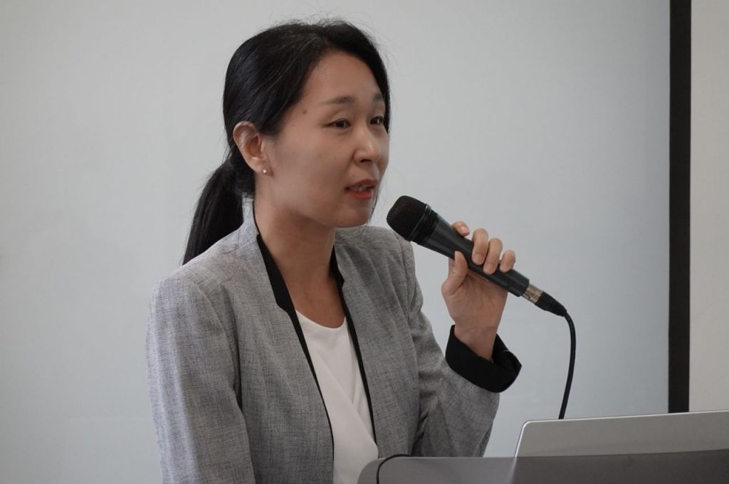 윤주연 KISA 법제연구팀장이 'EU 디지털 미래 구축을 위한 사이버보안 방향과 시사점'에 대해 발표하고 있다. [사진제공=KISA]