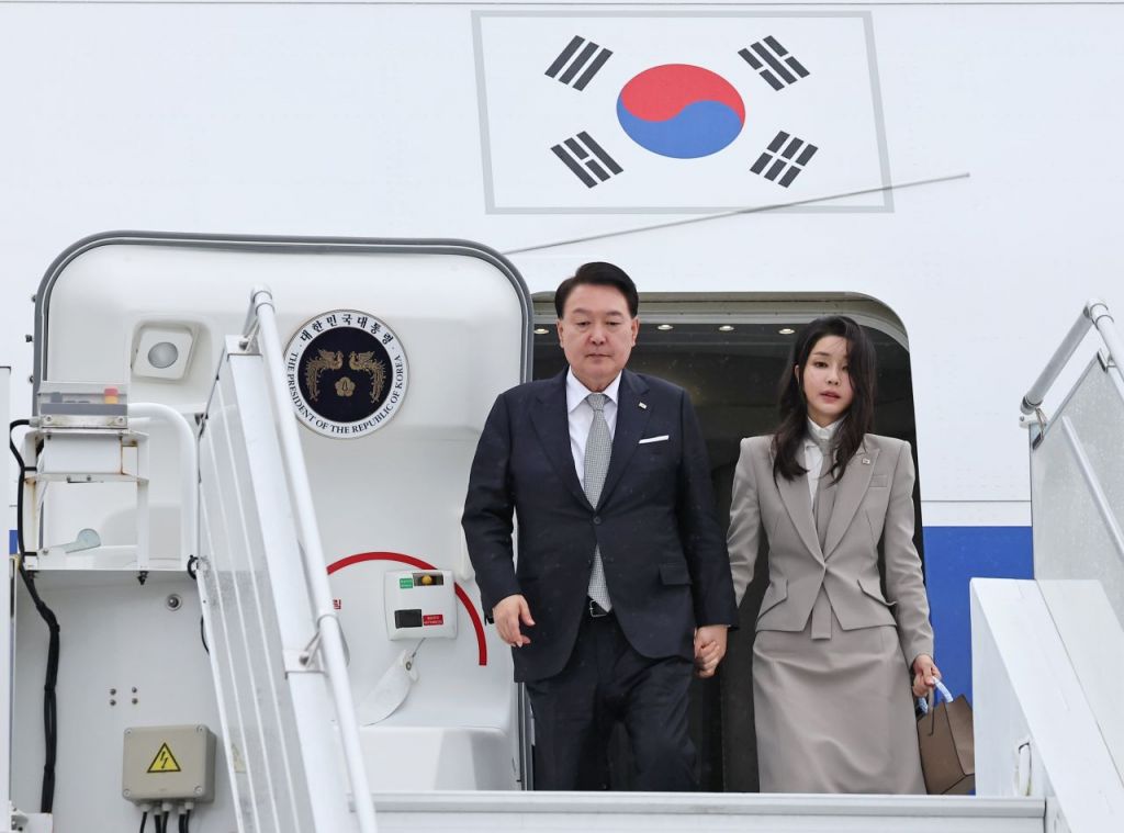 윤석열 대통령과 부인 김건희 여사가 18일(현지시간) 대통령 전용기인 공군 1호기를 이용해 미국 뉴욕 JFK공항에 도착했다. [이미지출처=연합뉴스]