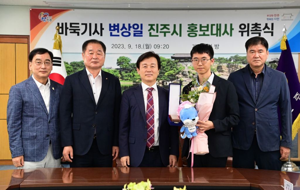 조규일 시장은 “세계바둑 최상위 기사인 변상일 9단과 귀한 인연을 맺게 되어 기쁘게 생각하며 진주시 홍보대사로 변상일 9단이 국내·외로 스포츠 도시 진주를 널리 알리는 데 적극적으로 힘써줄 것”을 당부했다.