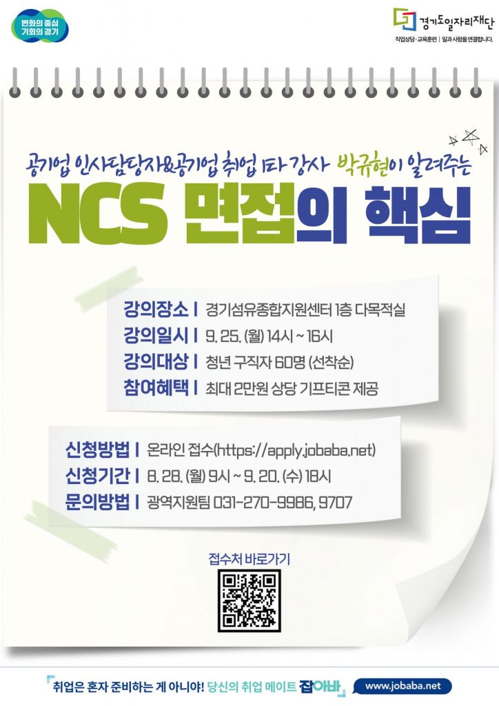 도 일자리재단은 25일 양주 경기섬유종합지원센터에서 양주일자리센터와 공동으로 ‘공기업 인사담당자 박규현이 알려주는 국가직무능력표준(NCS) 면접의 핵심’ 특강을 연다고 19일 밝혔다.