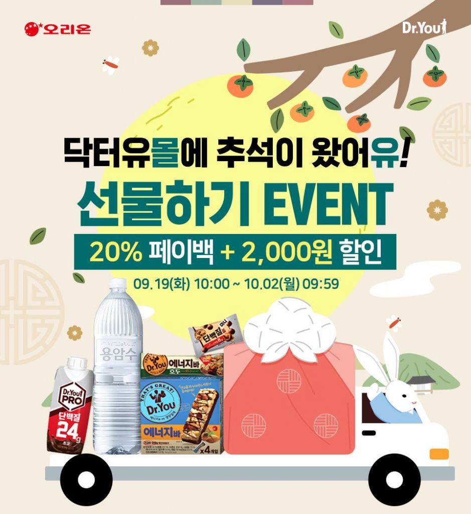 오리온은 추석을 맞아 '닥터유몰'에서 다양한 혜택을 제공하는 '추석 선물하기 이벤트'를 진행한다고 19일 밝혔다.