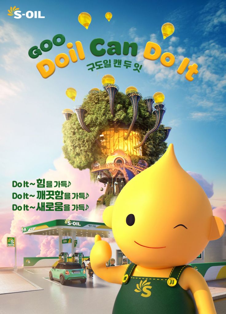 S-OIL의 새 광고는 브랜드 캐릭터인 구도일이 사는 주유기 속 판타지 세상 ‘S-OIL랜드’를 소재로 긍정의 힘과 응원 에너지를 전달한다.
