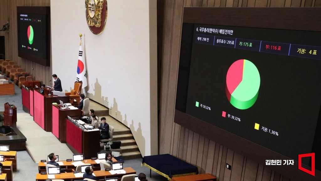 국회는 21일 오후 본회의를 열어 ‘한덕수 국무총리 해임건의안’에 대해 무기명 투표를 통해 재석 295표 중 찬성 175표, 반대 116표, 무효 4표로 가결시켰다.