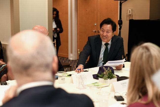 오 시장은 19일(현지시간) 미국 뉴욕 플라자호텔에서 열린 'C40 도시기후리더십그룹(이하 C40) 운영위원회의'에 참석했다. 서울시장으로서 C40 회의에 처음 참여한 2009년 이후 14년 만이다.