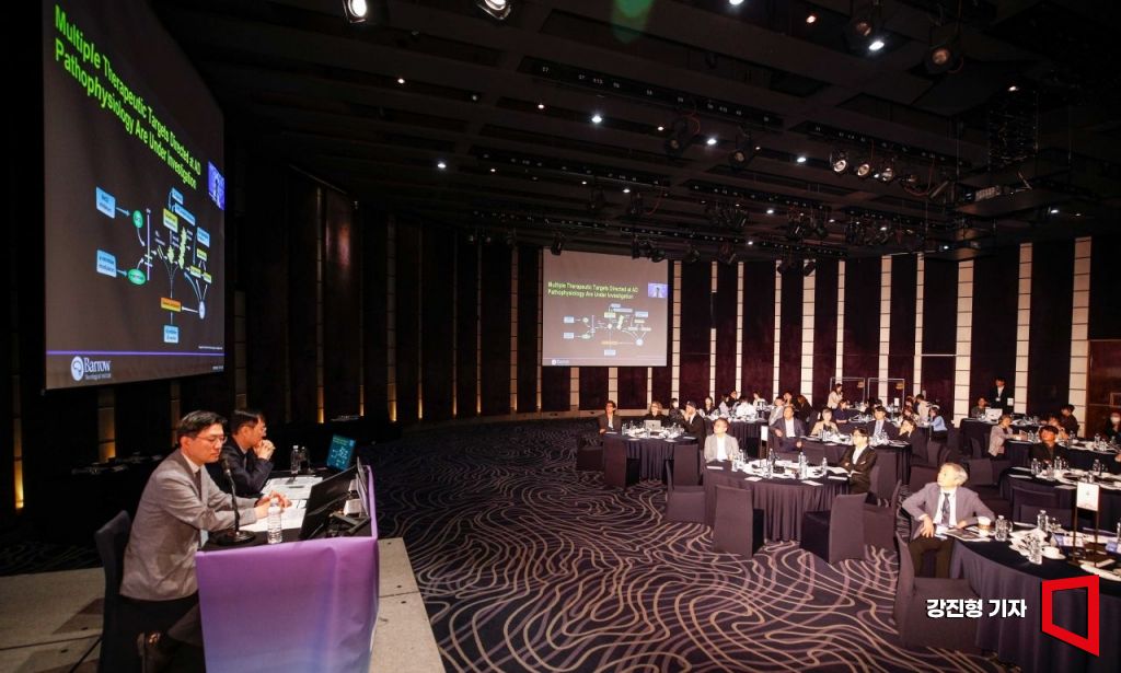 마완 사바 미국BNI 박사가 22일 서울 중구 조선호텔에서 열린 '2023 글로벌 디멘시아 콘퍼런스'에서 화상으로 강연하고 있다.